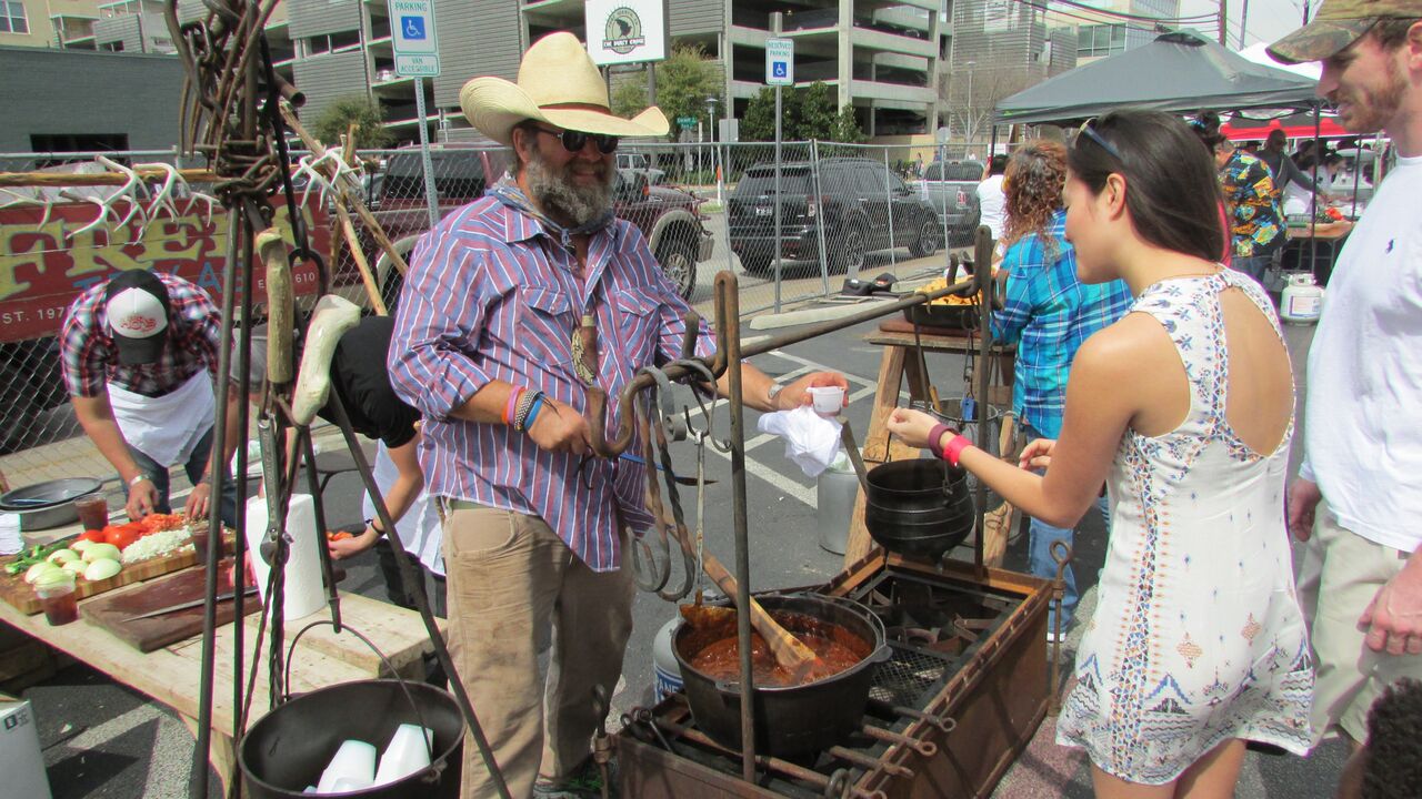 “I’m not here competing with anybody. I’m just down here having fun with everybody in Fort Worth on a nice early spring day and just loving everybody, hanging out, making chili.”