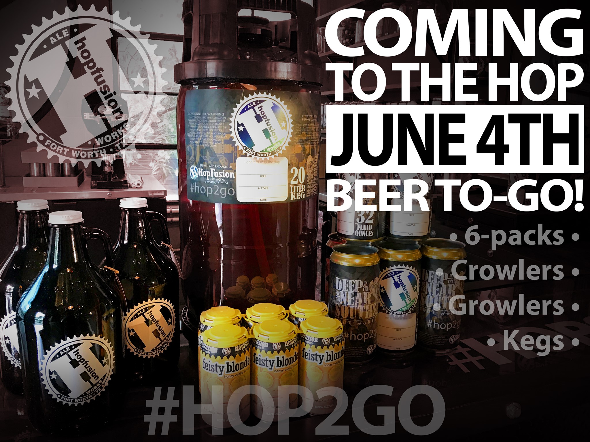 From HopFusion: Starting now, we will have beer to-go at The Hop, featuring sixers, 32-ounce crowlers, 64-ounce growlers, growler fills, and 20-liter kegs (zero deposit required). No minimums, no maximums, no hassles, always fresh!