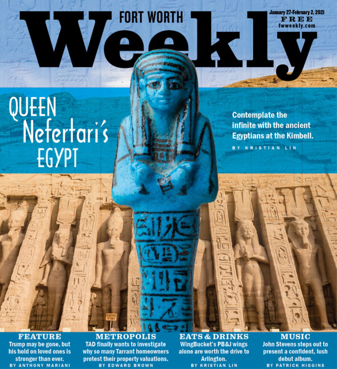 I hate to say it, but my first major museum exhibit since the pandemic turned out to be a bit of a logistical bummer. Queen Nefertari’s Egypt has been laid out in the Kimbell’s Piano Pavilion to allow visitors to practice social distancing. This means that you may very well have to wait at the exhibit’s entrance in the pavilion’s lobby before you go in. It also means that you have to follow a rigidly marked path through the show, possibly having to wait while the people in front of you are done looking at whatever item of interest they’re viewing before you can move on. I miss the freedom of movement that I enjoyed at museum shows in the time before. Despite all of that, the Kimbell’s latest blockbuster still has plenty to enthrall Egyptologists and the like.