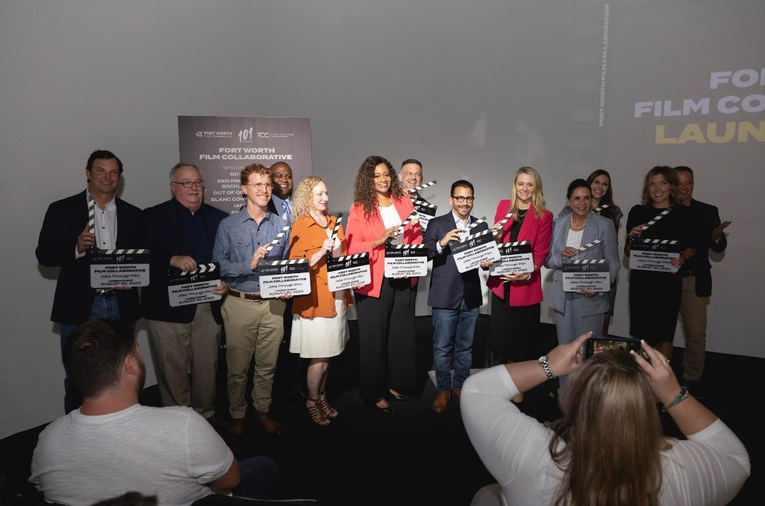 The crowds lingered well after last week’s guest speakers concluded their remarks about the Fort Worth Film Collaborative. Eschewing the traditional ribbon-cutting, LeBlanc, Glasser, Parker, and other program organizers and supporters grabbed clapperboards as folks in the crowd shouted, “Rolling!” and “Quiet on set!”