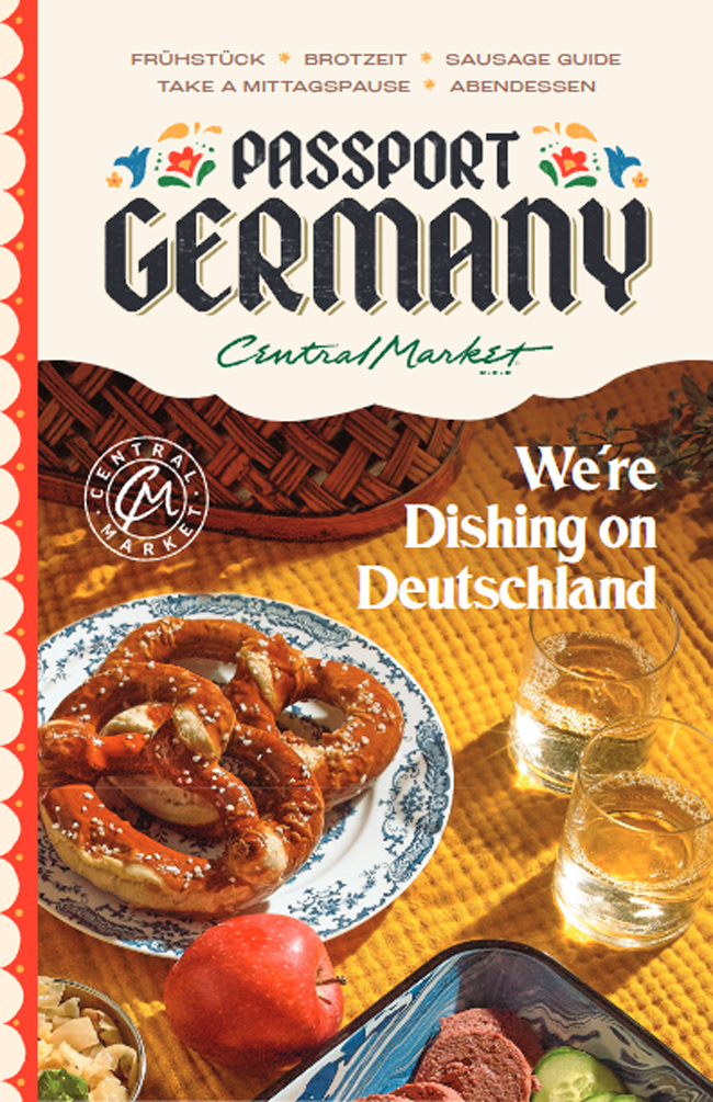 From September 10th to 23rd, customers can explore unexpected flavors, regional specialties, and the art, music, and dance that make German food culture so rich, surprising, and worth discovering. Started in 2010, the Passport series has honored such countries and regions as Greece, Mexico, Italy, France, Brazil, Spain, Argentina, the United Kingdom, and the Southern United States. The culinary celebrations reinforce Central Market’s promise to be a destination for expanding taste. This year, Central Market will showcase that there is much more to German food than beer, bratwurst, and pretzels. Prost!