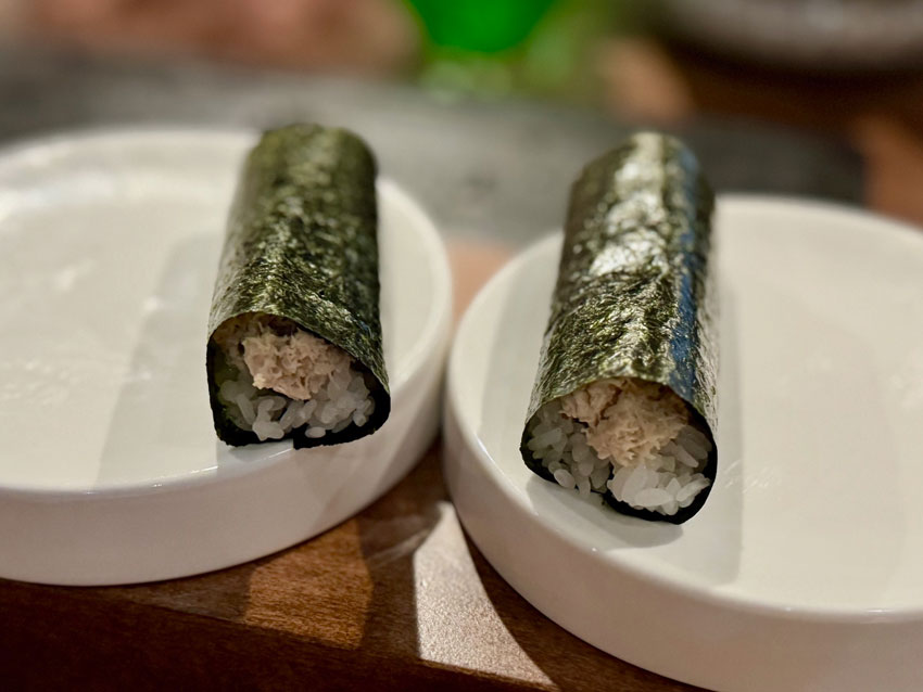 Moving onto the handrolls, we kept it simple by ordering a spicy tuna and crab that came rather plump with meat and rice, making the price points attractive. There are pre-chosen options ranging from three to five rolls with slightly lower pricing than ordering a la carte. Shrimp katsu, unagi, and negi hama make appearances alongside vegetarian rolls such as avocado, eggplant, and seasoned Japanese gourd shaving. Adventurous diners putting themselves into the hands of the creators can enjoy omakase, featuring a chef’s choice of the season’s best for $85.