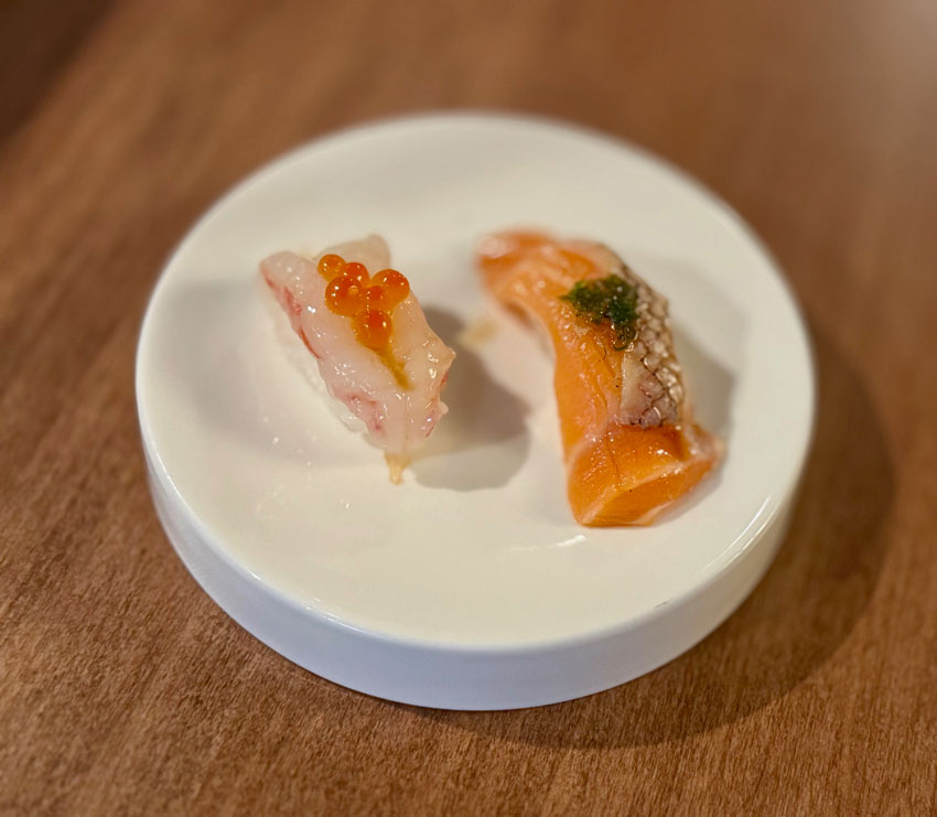 Along with a paper menu, wood blocks on the brick wall announce your choices and the specials of the day. Any questions will be gladly answered by the friendly staff. My guest and I opted for two of the specials served as nigiri: the salmon toro (fatty salmon belly), which was obnoxiously good thanks to its rich, velvety, subtly sweet characteristics; and the sawara, a Japanese Spanish mackerel, torched to a light surface char and brushed with brown butter garlic sauce. My guest and I agreed this was the best bite of the dinner.
