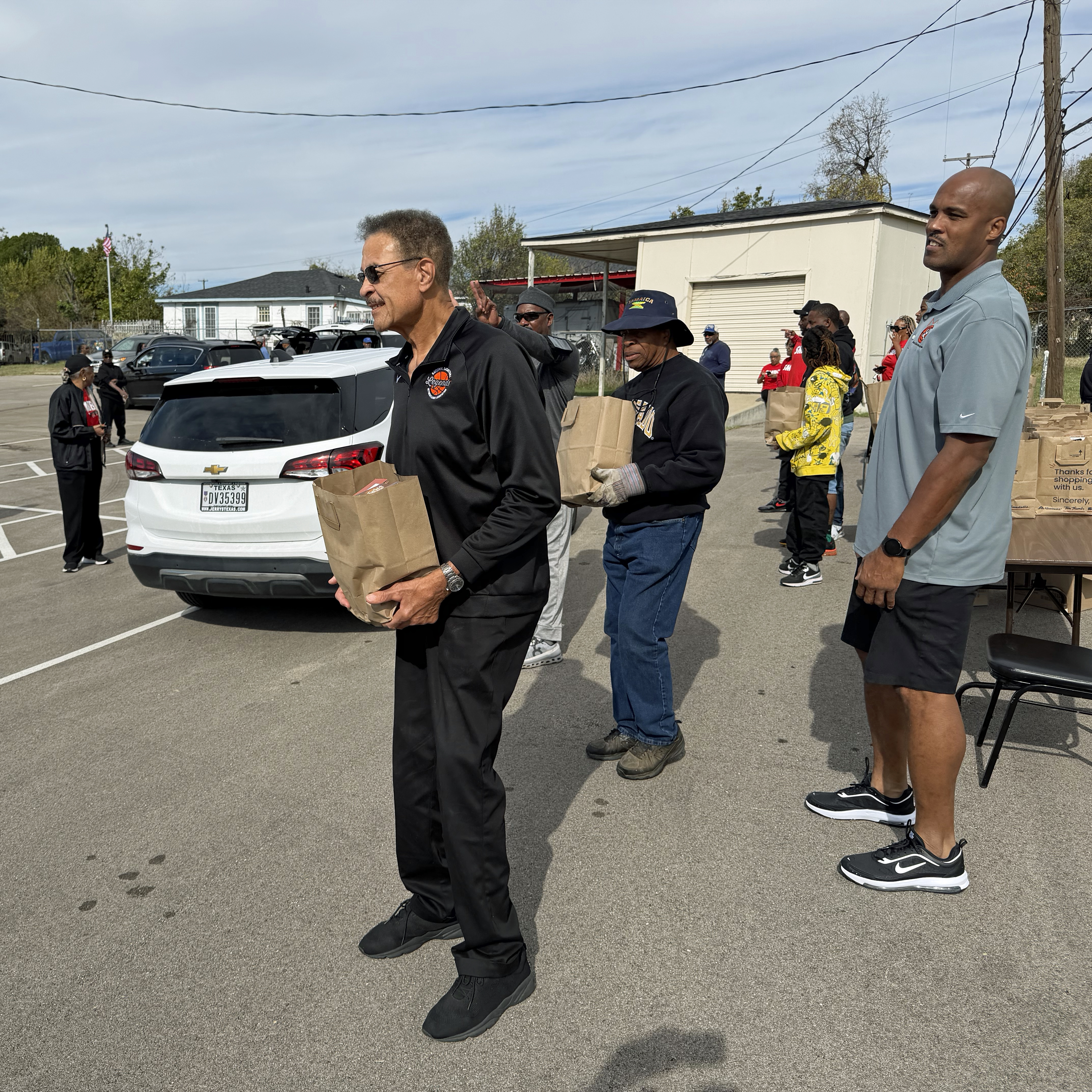 “Passing out turkeys and all of the trimmings to families, and we’re having a great time doing it,” said Willie Davis, the local chapter president for the National Basketball Retired Players Association.
