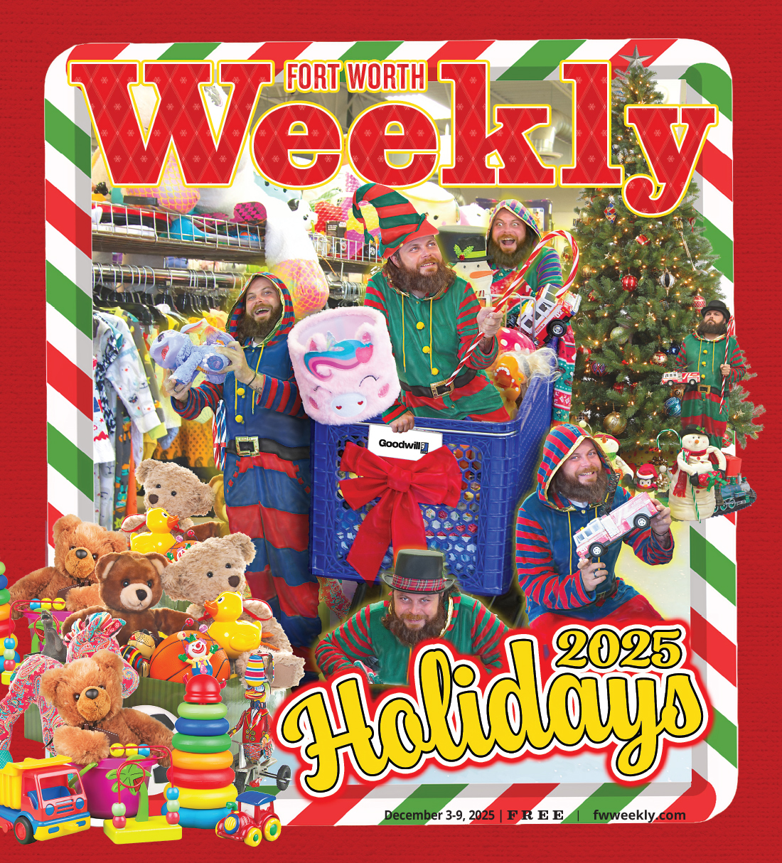 Thank ya very much, indeed. It’s that time of the season for giving and getting but mostly giving, and we here at the Weekly hope to inspire you to not only shop local but donate to worthy causes. The WARM Place (providing grief support for children and families), Fort Worth HOPE Center (delivering food to families in need and pets), and the Tarrant Area Food Bank are all great places to start your volunteering journey or for donations. For those with a modicum of foldin’ money, peek inside for awesome, mostly local products for everything from stocking stuffers to The Gift. On pg. 26, our music scribes offer a list of stellar presents for the audiophile in your life, while on pg. 29, there’s an equally splendid rundown of all the must-have video games that came out this year. There’s also a bonanza of New Year’s Eve shindigs (pg. 25), a what’s-what about the upcoming FIFA Men’s World Cup and where to buy accompanying merch (pg. 9), a look at a variety of gifts from local artisans (pg. 11), and so much more. So, in the words of Sir Elton John, step into Christmas with us. You won’t be disappointed.
