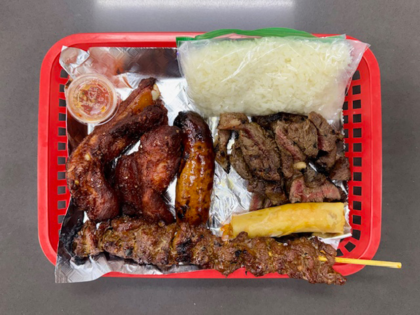 Not often do I stroll into a liquor store only to leave empty-handed, but in this case, I exited without any beverages but with a belly full of Southeast Asian barbecue. Tucked inside Liquor Up on Alta Mere is where I found Kelly’s Cambodian BBQ. The husband-and-wife duo of Curtis Bennett and Cambodia native Kelly Vorn set up shop inside their friend’s liquor store seven months ago, and folks are streaming in and staggering out.