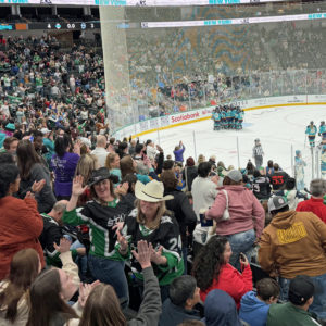 The PWHL expanded by two teams for this season, its third. Continued successes in possible growth markets, along with assistance from men’s hockey entities (the NHL provides the women’s league in-kind support), will accelerate the process of adding more franchises. We saw fan-created signs requesting a PWHL expansion team for North Texas, including one by some fans sitting in front of us that made it onto the scoreboard video screen. Stars’ players Jason Robertson and Mavrik Bourque also found themselves on the big TV. They came to the AAC on a night off to watch the PWHL game. Maybe someday they’ll share the arena with one of its teams.