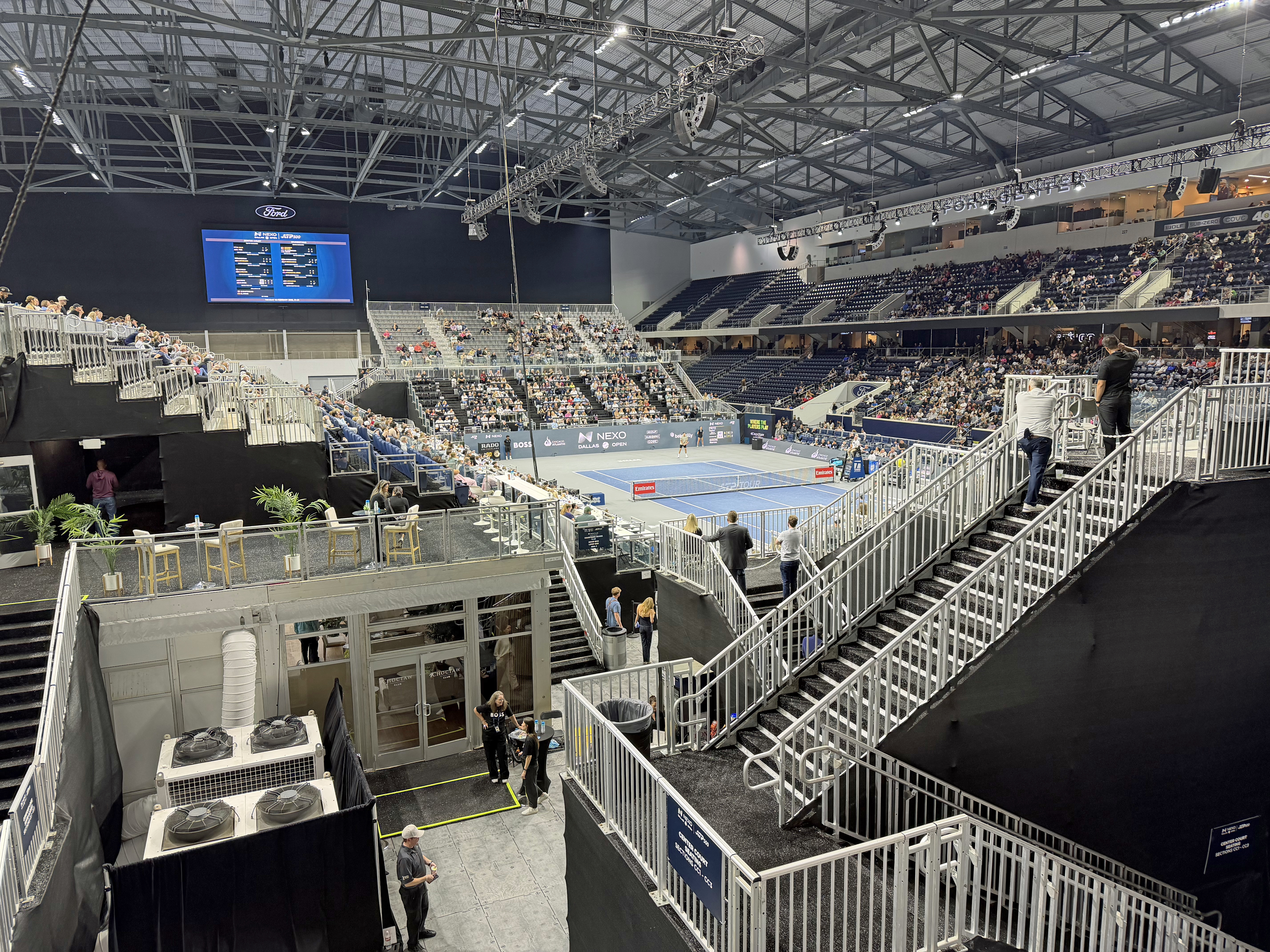 Michelsen (ranked 41st in the world) and some of the world’s top male players are competing this week in the Nexo Dallas Open. It’s an ATP 500-level event held indoors, for the second consecutive year, at Ford Center at The Star in Frisco. That’s part of the Dallas Cowboys’ headquarters complex, which Frisco ISD also uses for high school football games. A pair of stadium courts and multiple practice courts cover the yard lines and hashmarks.