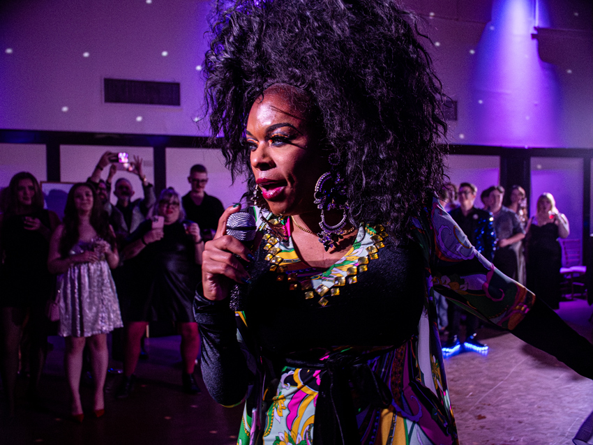 The entertainment for the evening featured performances from August Edwards, Mystique Summers, and Deja Dubois, who began their performances with a choreographed dance to the song “This Little Light of Mine,” followed by solo dance and drag acts.