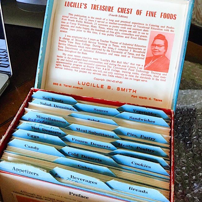 In 1941, Smith published Lucille’s Treasure Chest of Fine Foods, a cookbook that came as a box of recipe cards. It was released in several editions and later became a collector’s item. How collectible? Well, according to Atlas Obscura, one sold at a virtual rare book fair in 2020 for $1,650. Currently, the listings on Biblio and Etsy are $4,500 and $5,500, respectively. As one lucky UTA staffer discovered, there is one at UTA’s Libraries’ Special Collections and Archives.