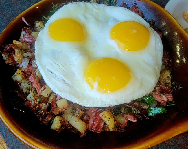 Corned beef is not technically an Irish tradition, as it was too expensive for the locals to eat back home. Irish-American immigrants found it affordable in the states, and now it is a thing. Tom’s Burgers & Grill (1530 N Cooper St, Arlington, 817-459-9000) has it on their breakfast menu. The house-made corned beef hash topped with three eggs and served with gluten-free toast will run ya $19.12.