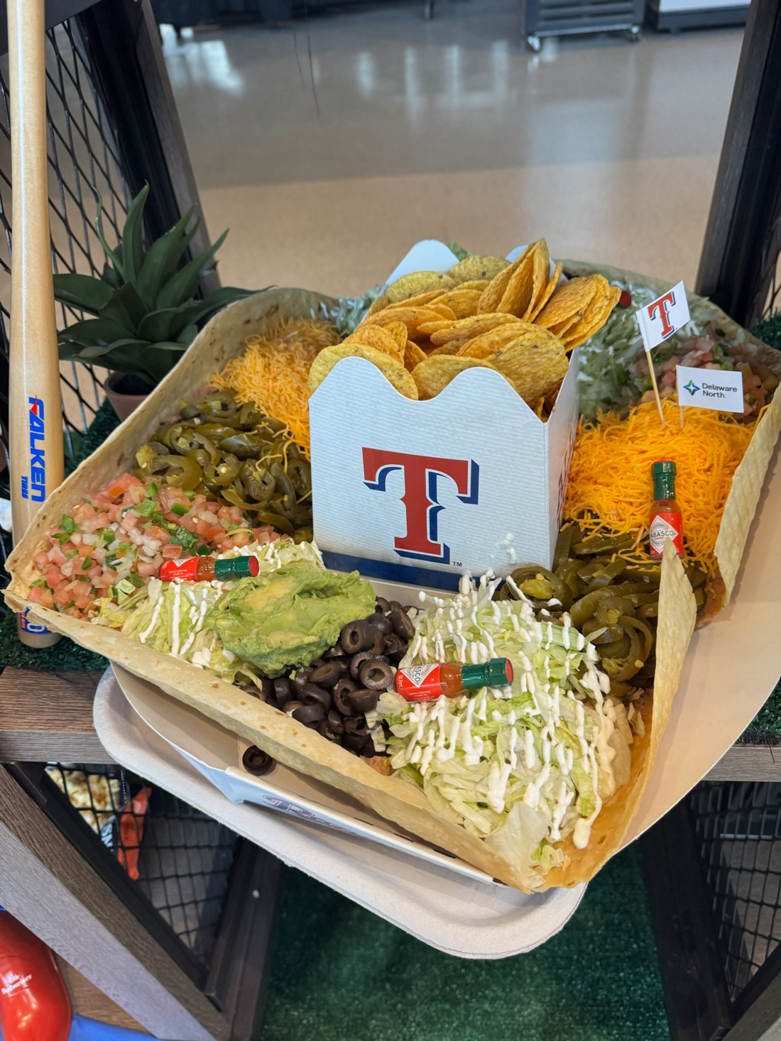 The season’s headliner is the $40 9th Inning Rally Sombrero, a nine-layer dip served inside a 26-inch fried tortilla shell filled with refried beans, cheddar cheese, sour cream, guacamole, pico de gallo, black olives, jalapeños, and shredded lettuce, plus tortilla chips. It’s a special treat for vegetarians.